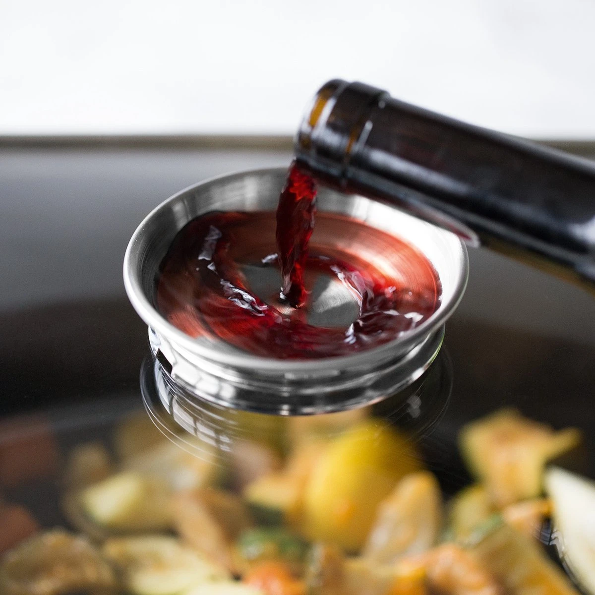 Vol smaak voor het braden van feestdagen en gemorste groenten? De in het glazen deksel geïntegreerde aromaknop maakt het doseren van wijn en bries voor het aromatiseren extra eenvoudig – dat geeft druppels voor druppels nog meer aroma.
