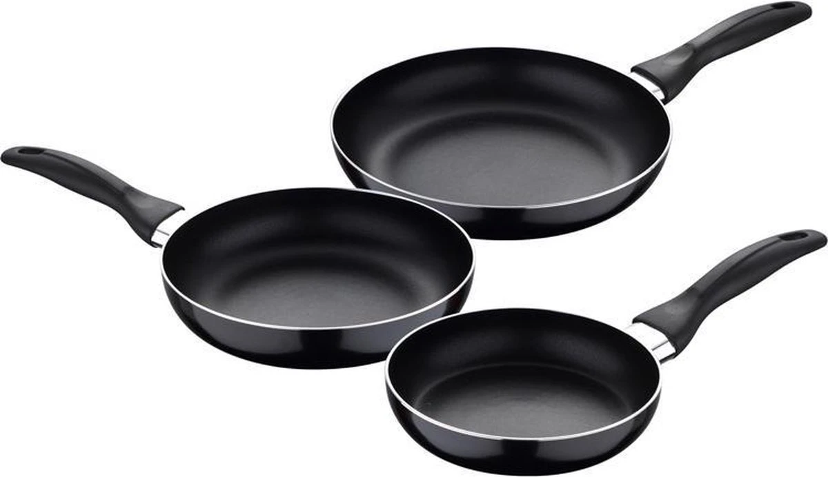 Deze voordelige koekenpannen zorgen voor optimaal kookplezier. De 3 koekenpannen zijn licht van gewicht en perfect voor gezond koken met weinig olie of vet. De perfecte pannenset voor bv studentenhuizen of voor op de camping.