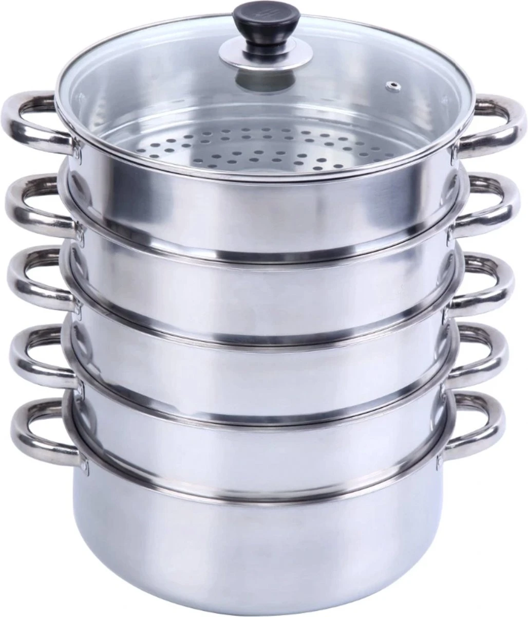 Service96 – Stoompan – 5 Lagen – Roestvrij Staal – Dikke Stoompan – Soeppan – Universele Kookpotten – Voor Inductiekookplaat, Gasfornuis – Kookgerei
