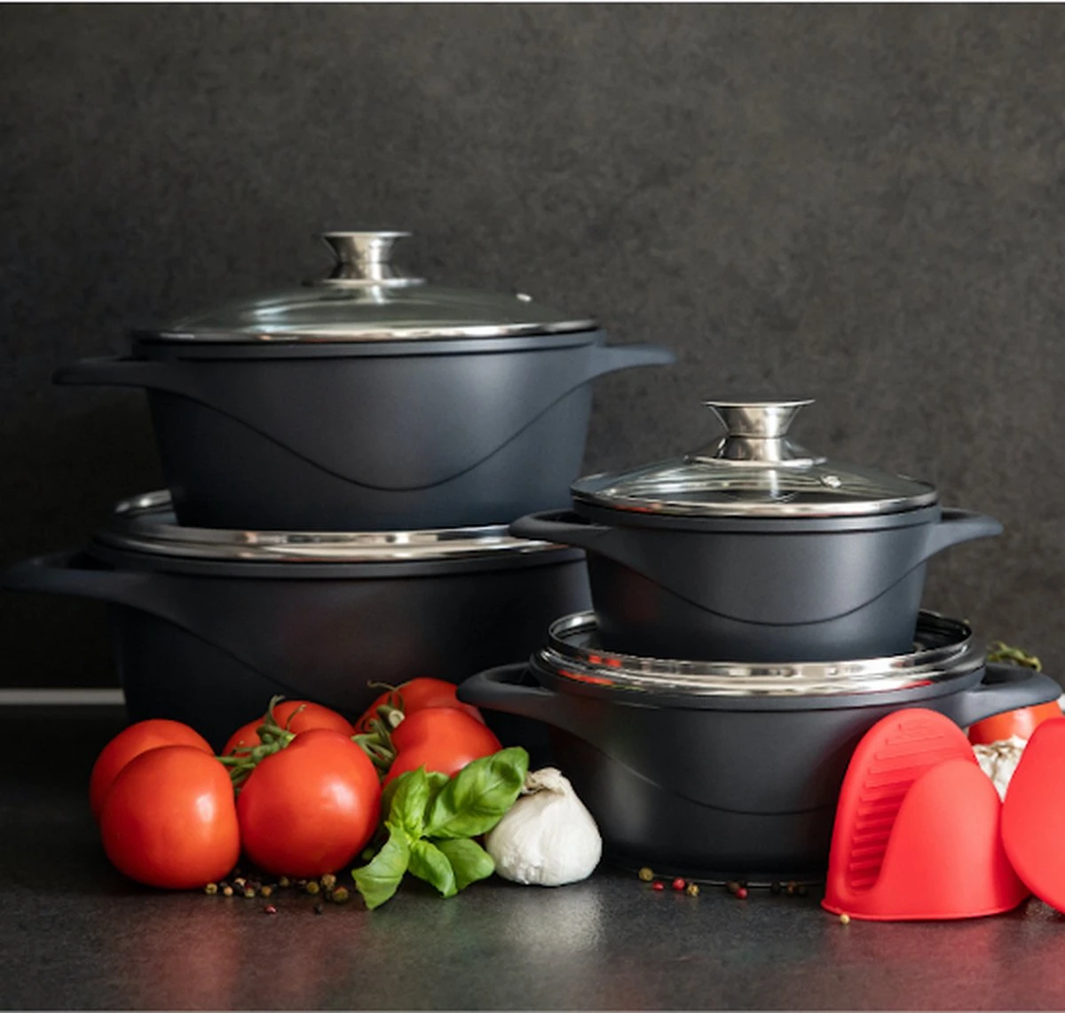 Smile 10 Delige Pannenset – Antiaanbaklaag – Vaatwasser Bestendig – Zwart